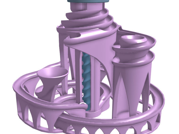 這是一臺(tái)大理石機(jī)器,帶有升降機(jī),可同時(shí)提升三個(gè)(或更多)大理石,并將它們釋放到三個(gè)獨(dú)立的軌道上。其中兩個(gè)軌道是串聯(lián)連接的,因此大理石將在這些軌道之間交替。第三個(gè)軌道回到自身,所以要在所有三個(gè)軌道上都有交通,你需要至少兩個(gè)大理石。
