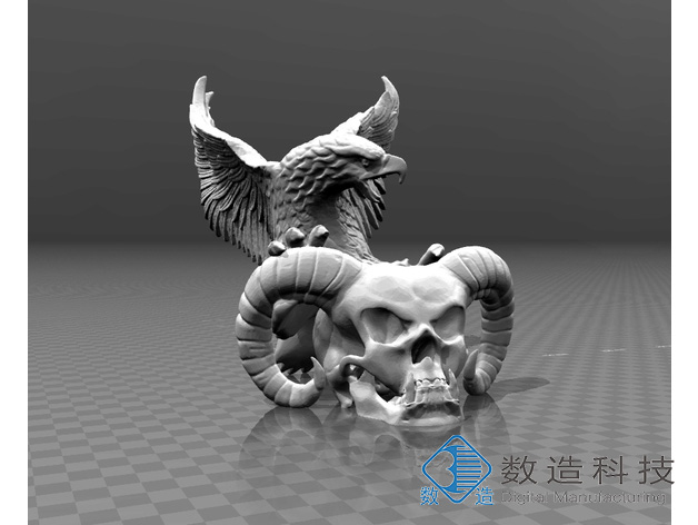 3D打印/3D模型掃描/3D三維掃描/3D模型下載/3D設(shè)計(jì)/魔鬼頭骨與鷹-裝飾品