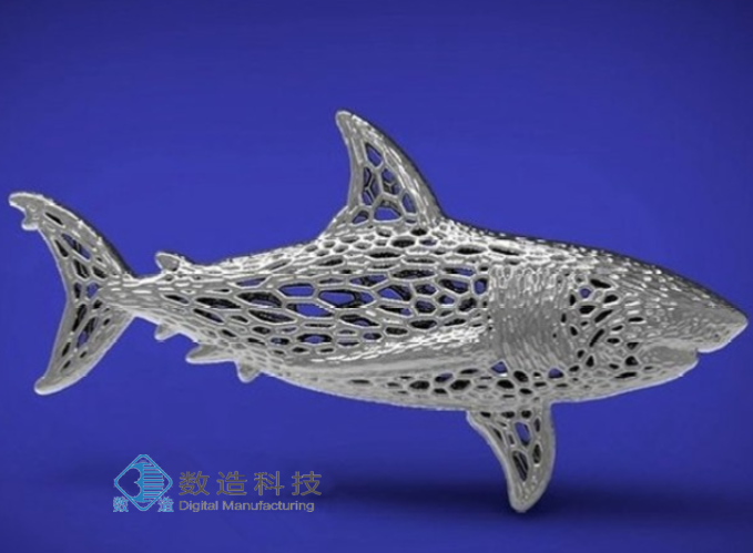 這是一只鯊魚的模型。鯊魚生活在海洋中,是海洋中最兇猛的魚類。此作品具有一定的裝飾作用。