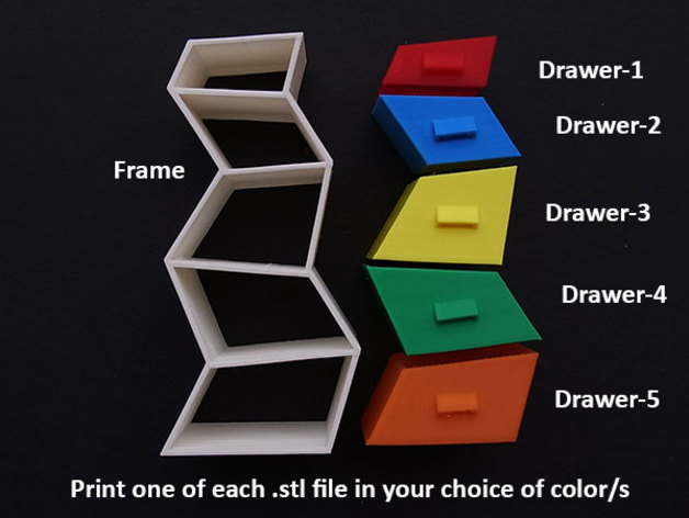 因為'Wonky抽屜'有點奇怪,如果你有一系列的燈絲可以有顏色的樂趣......但如果不是它們看起來仍然很好,框架一種顏色和抽屜都是第二種顏色。