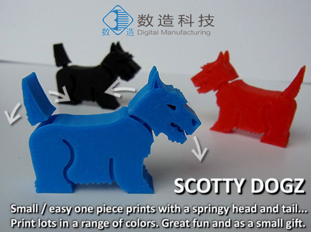 Scotty Dogz是一款易于打印的小型單品,帶有彈性的頭部和尾部。在標準尺度下,它們僅測量50mm長/38mm高/ 10mm厚,因此使用非常少的燈絲并在很短的時間內打印。