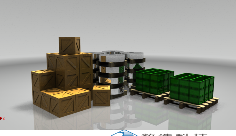 工業倉庫,這是一個沖壓工業倉庫,有木箱,鋼板材料卷,和存放工件的箱子