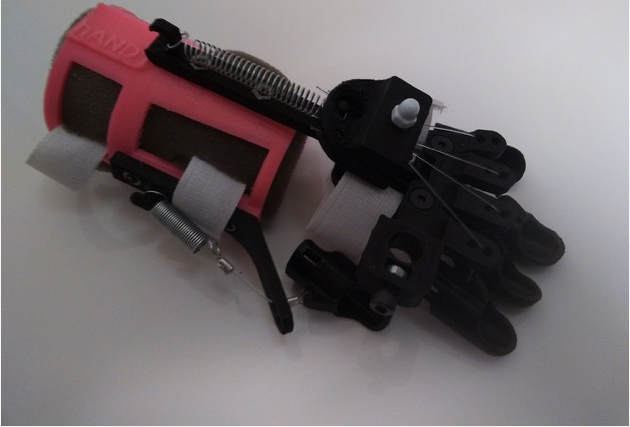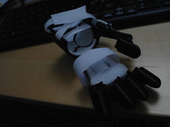 在打印后,在手臂環的內側和放在手上的盤子下面添加了一些軟的材料。然后我用尼龍搭扣把它拉緊。
